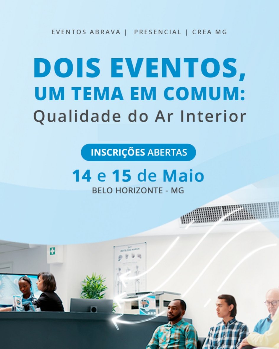 Organizados pelo Qualindoor – Departamento de Qualidade do Ar Interior, por meio da Regional ABRAVA MG - Associação Brasileira de Refrigeração, Ar Condicionado, Ventilação e Aquecimento), em parceria com o Chapter Brasil da ASHRAE (Sociedade Americana de Engenheiros de Aquecimento, Refrigeração e Ar Condicionado), os eventos acontecerão na sede do CREA-MG, em Belo Horizonte. As inscrições já estão abertas e as vagas são limitadas.